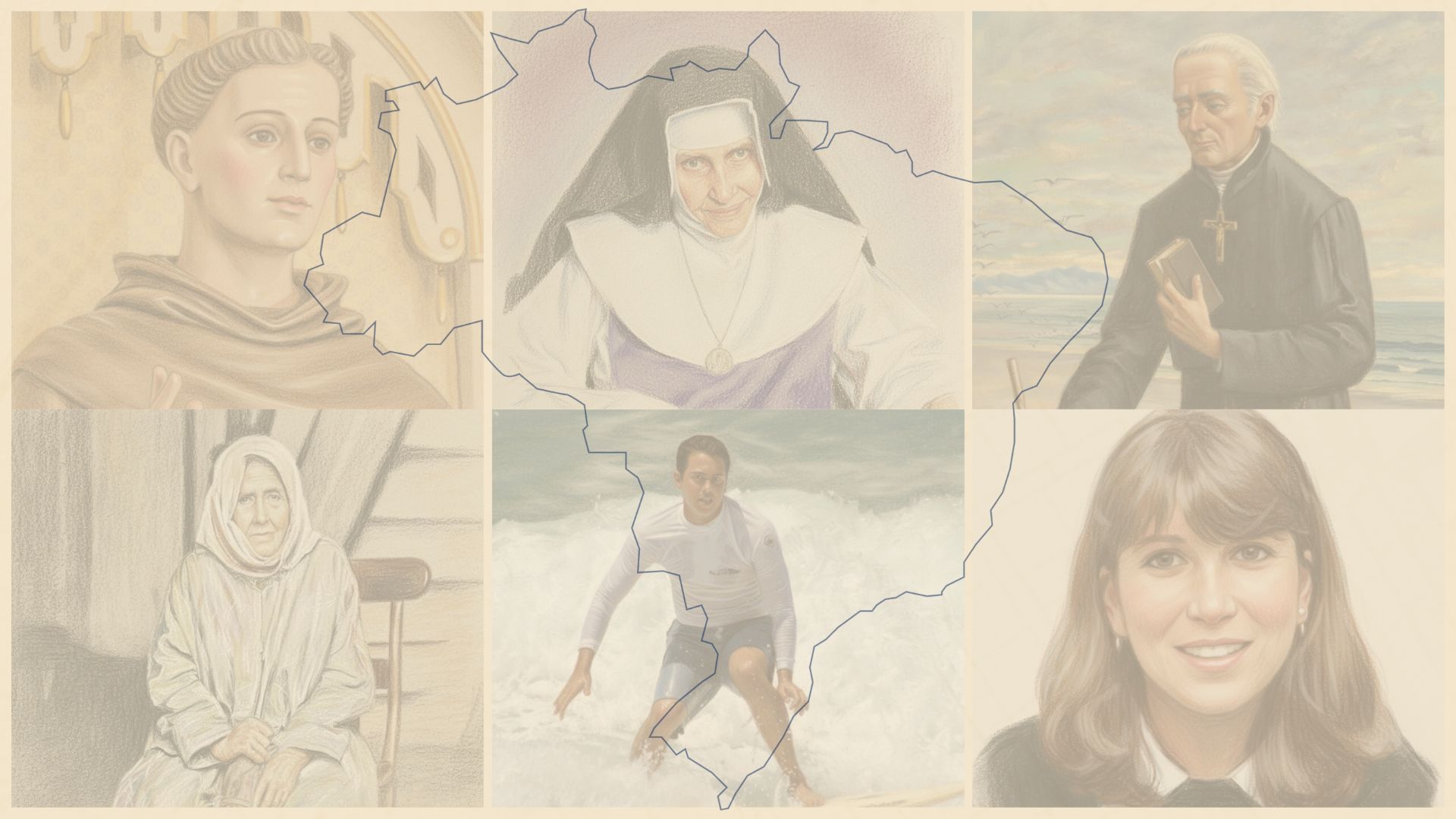 Imagem: Frei Galvão, Santa Dulce dos Pobres, São José de Anchieta, Beata Nhá Chica, Venerável Guido Schaffer e Beata Isabel Cristina