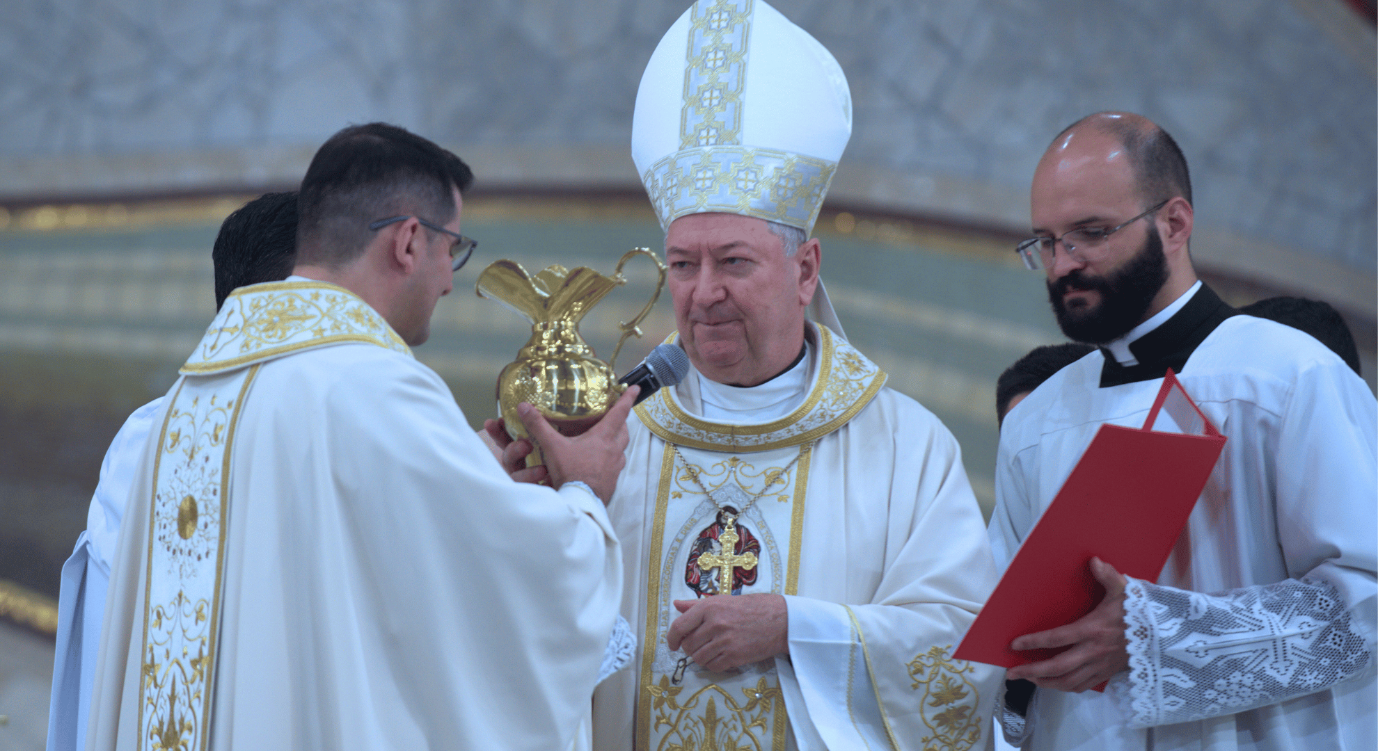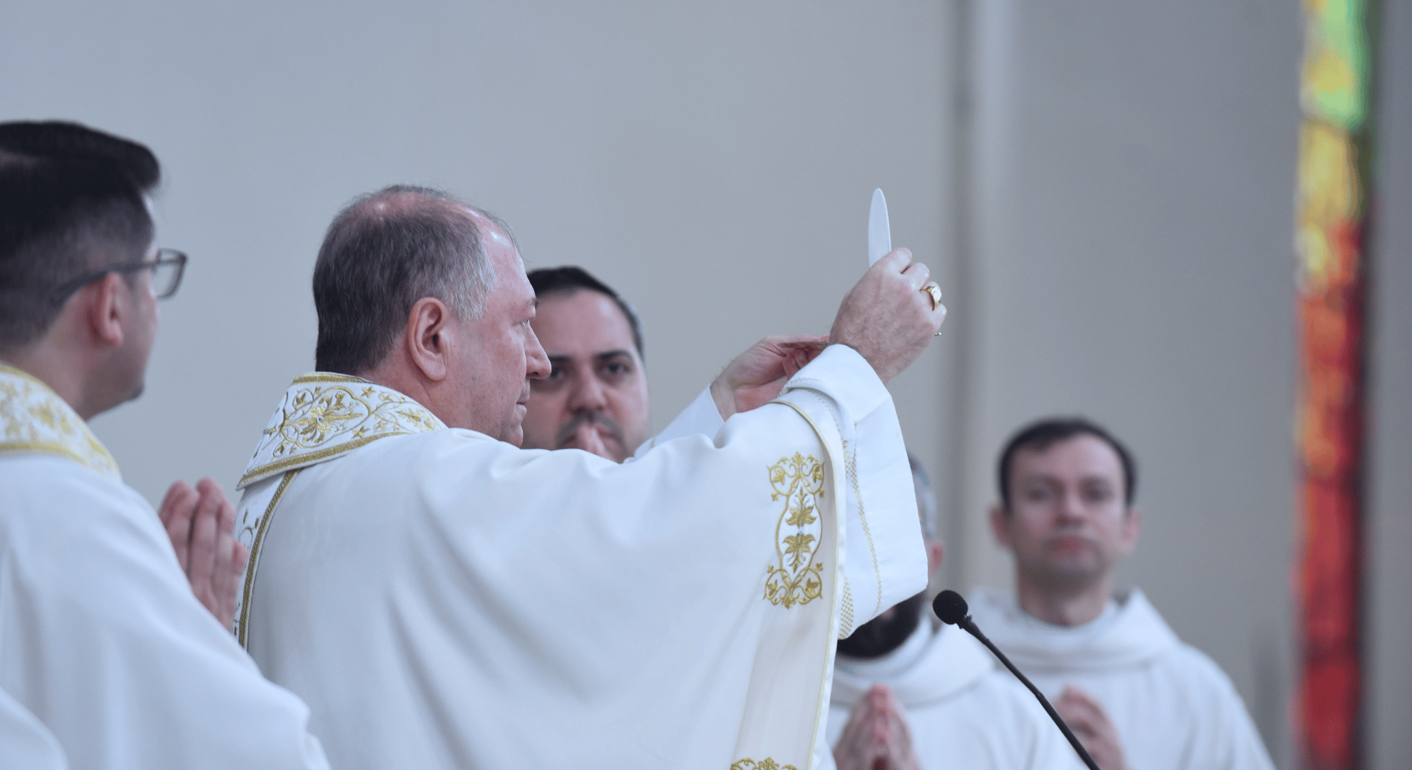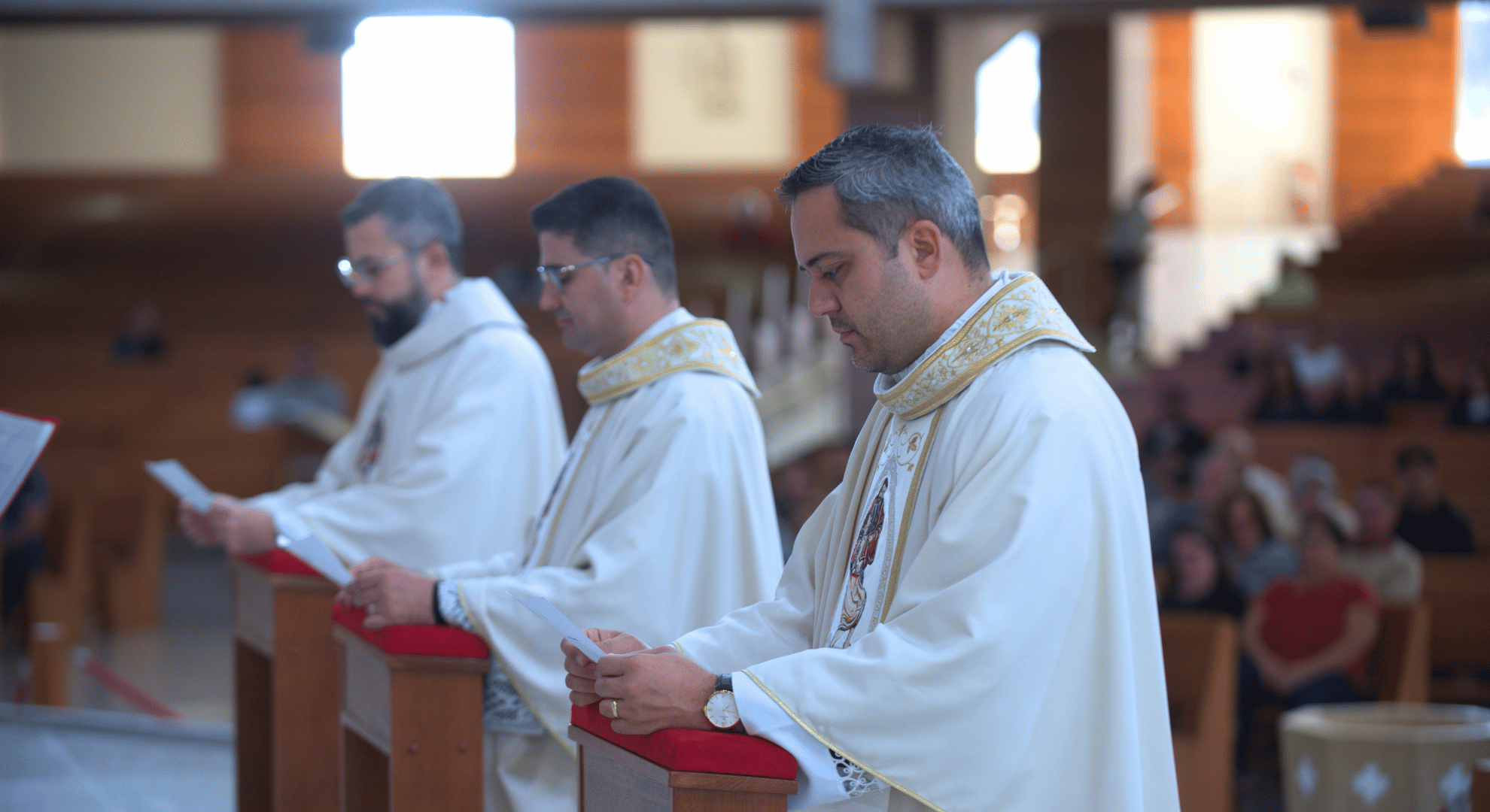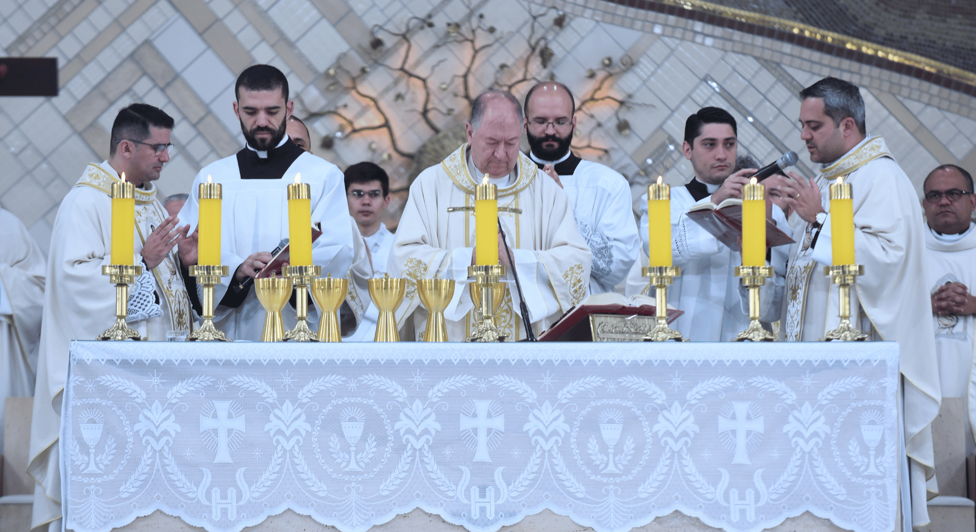 Clero presente na missa da posse da nova reitoria do Santuário do Pai das Misericórdias. Foto: Nathane Rangel