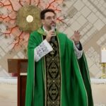 O Evangelho é de São Mateus: “Naquele tempo, Jesus disse aos discípulos: “Se alguém quer me seguir, renuncie a si mesmo, tome sua cruz e me siga. Pois quem quiser salvar a sua vida vai perdê-la; e quem perder a sua vida por causa de mim, vai encontrá-la. De fato, de que adianta ao homem ganhar o mundo inteiro mas perder a sua vida? Que poderá alguém dar em troca de sua vida? Porque o Filho do Homem virá na glória do seu Pai, com os seus anjos, e então retribuirá a cada um de acordo com a sua conduta. Em verdade vos digo: Alguns daqueles que estão aqui não morrerão antes de verem o Filho do Homem vindo com seu Reino” (Mt 16,24-28).